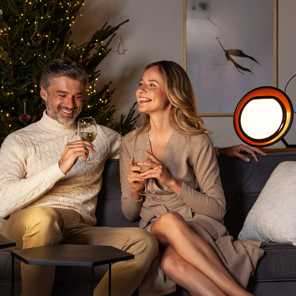 Halo combines two functions in one device – intense light therapy during the day and soft, calming lighting in the evening. This means it can be used throughout the day – for an energy boost in the morning and relaxation in the evening.